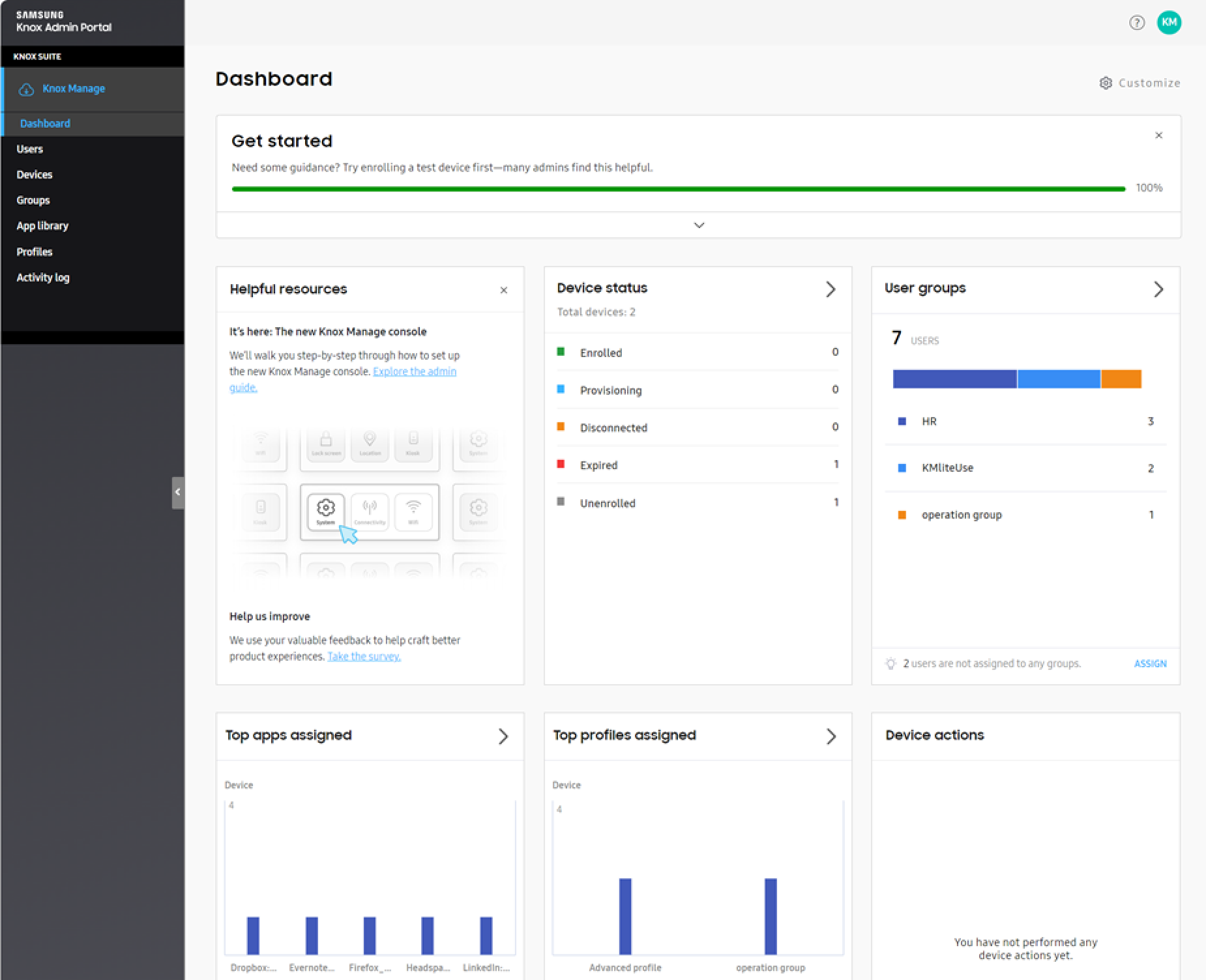 - Simplified workflows. We revisited the basic Knox Manage workflows and made them simpler where it made sense. Enjoy a better onboarding experience, improved feature descriptions, and the ability to reuse policies in different profiles.