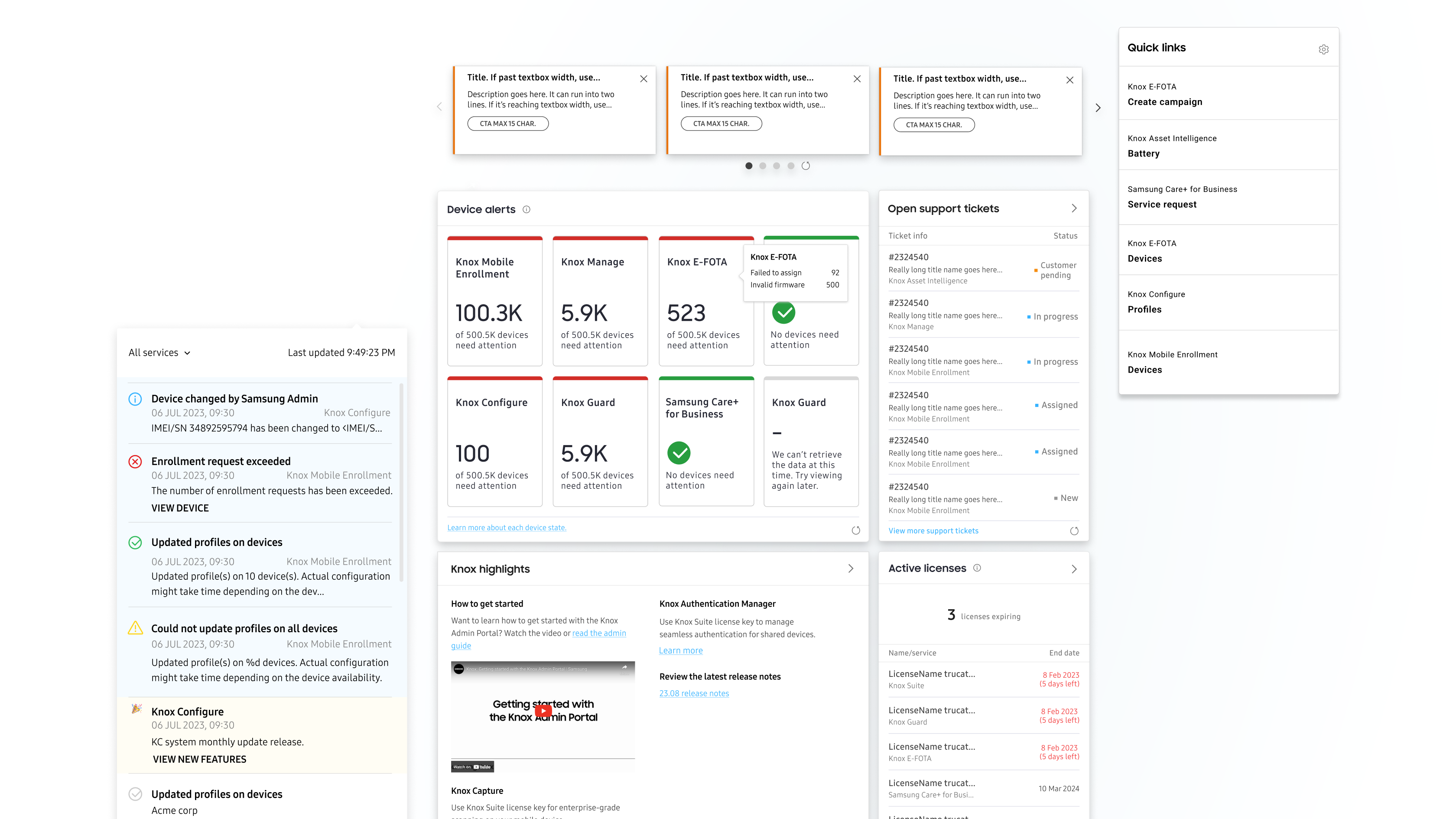 The Samsung Knox Admin Portal was recognized with the 2023 Red Dot Award in the category of interface design, specifically for their user-centric and research-driven approach to understanding the needs of customers. Our solution empowers users with a comprehensive overview of device health, admin, and license management, giving them valuable insights at a glance.