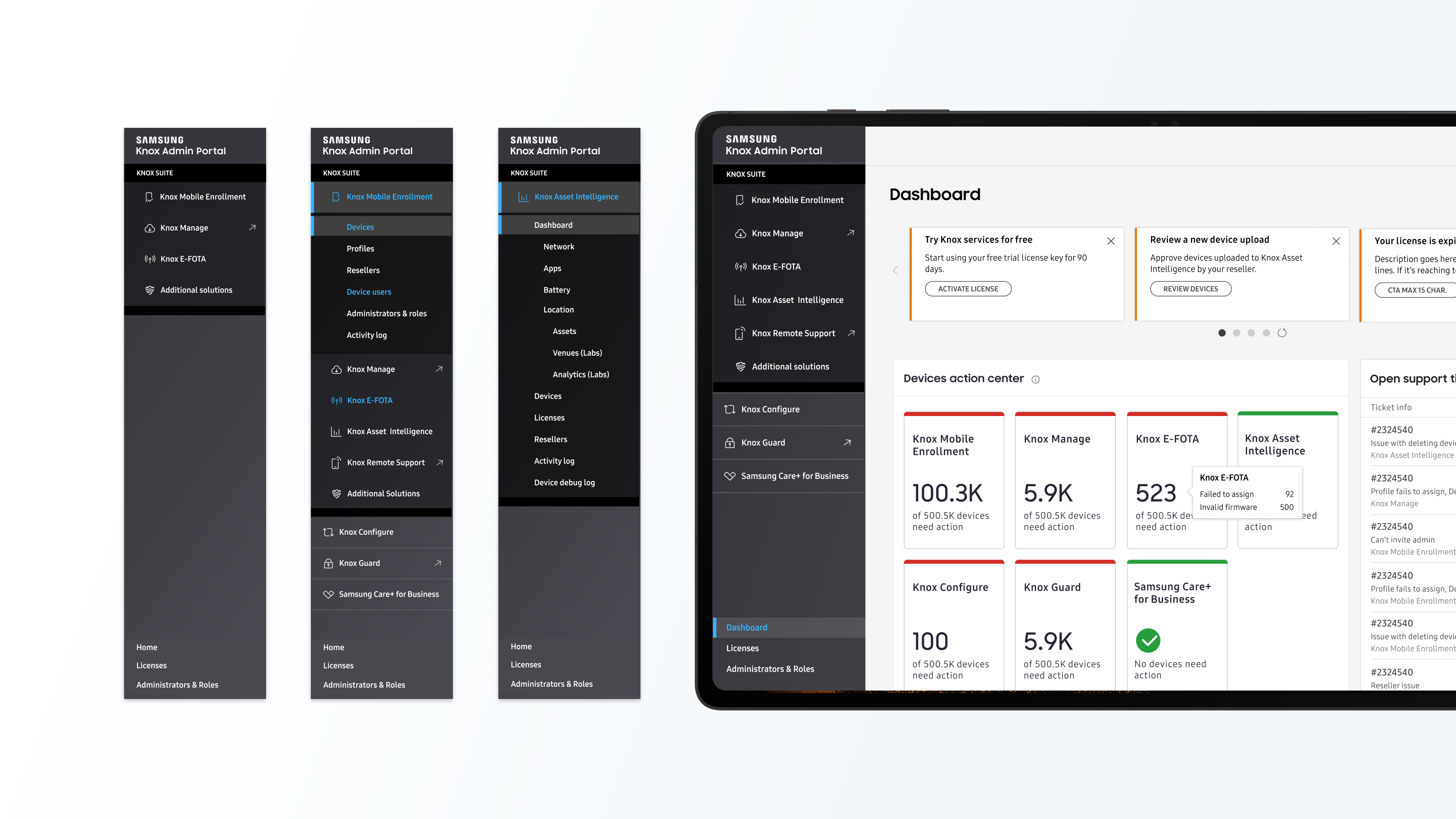Since its launch, the Knox Admin Portal has been a critical tool for many businesses around the globe. The improved device management solution aims to unify and harmonize the Samsung Knox experience for users everywhere. By simplifying admin management and unifying communications from individual services in a common notification center, the Knox Admin Portal dramatically increases admin productivity by removing redundancy in managing devices, licenses, and administrators across all Samsung Knox solutions.