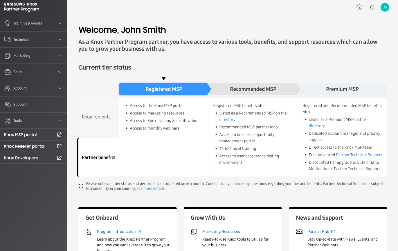 Part of Samsung’s goal of the Knox Partner Program (KPP) is to help our MSP partners differentiate their Samsung Knox managed service capabilities and show solution quality whilst managing their customers. Using partner feedback we gathered from the Beta release, we have designed three tiers to help MSPs differentiate themselves and their Samsung Knox managed services.